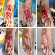 姓名:龚** 年龄:80岁 性别:女 籍贯:安徽六安 主诉:糖尿病足脚趾发黑血管介入术后感染 图 患者创面愈合过程图 图 患者……[详细]