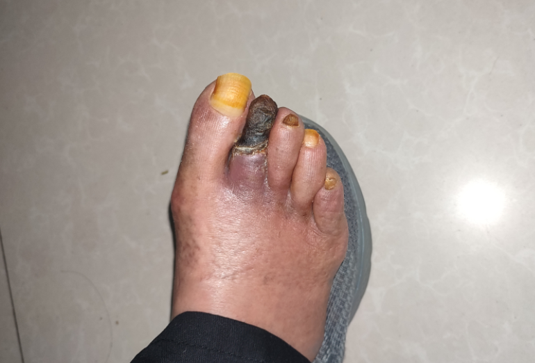 陕西糖足患者左足截肢不愈合,右足脚趾发黑,中医系统治疗效果良好